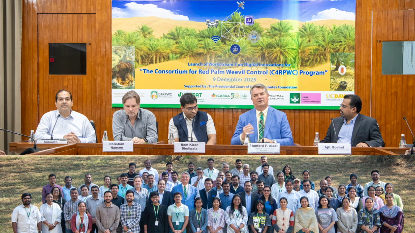 ICRISAT, Hyderabad hosted the launch of Workstream 3 – Digital Innovations under the Consortium for Red Palm Weevil Control (C4RPWC), marking a major global effort to combat one of the most destructive pests of date palms. Supported by the UAE Presidential Court and the Gates Foundation, the initiative focuses on predictive digital tools, early detection, and early warning systems using technologies such as remote sensing, IoT, AI, and satellite data. Led by ICARDA with ICRISAT spearheading the digital workstream, the three-year program aims to deliver affordable, field-ready solutions to protect date palms, farmers’ livelihoods, and ecosystems worldwide.