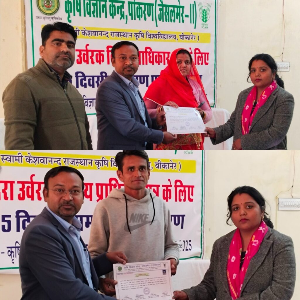 कृषि विज्ञान केंद्र पोकरण में 15 दिवसीय खुदरा उर्वरक विक्रय प्राधिकार प्रशिक्षण शिविर का सफल समापन