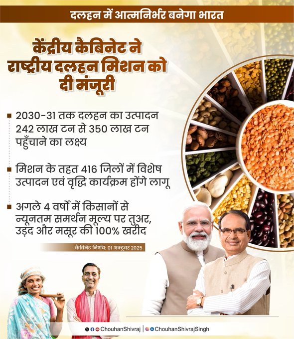 भारत लंबे समय से दलहन उत्पादन में आत्मनिर्भरता की ओर बढ़ रहा है। इसी दिशा में कैबिनेट ने राष्ट्रीय दलहन मिशन को मंजूरी दी है।