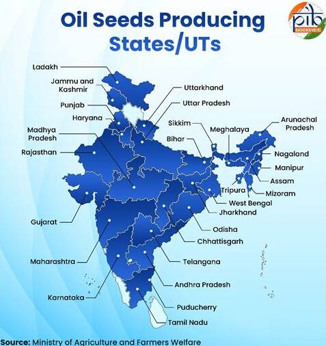 भारत वैश्विक तिलहन उत्पादन में 5–6% भागीदारी रखता है।