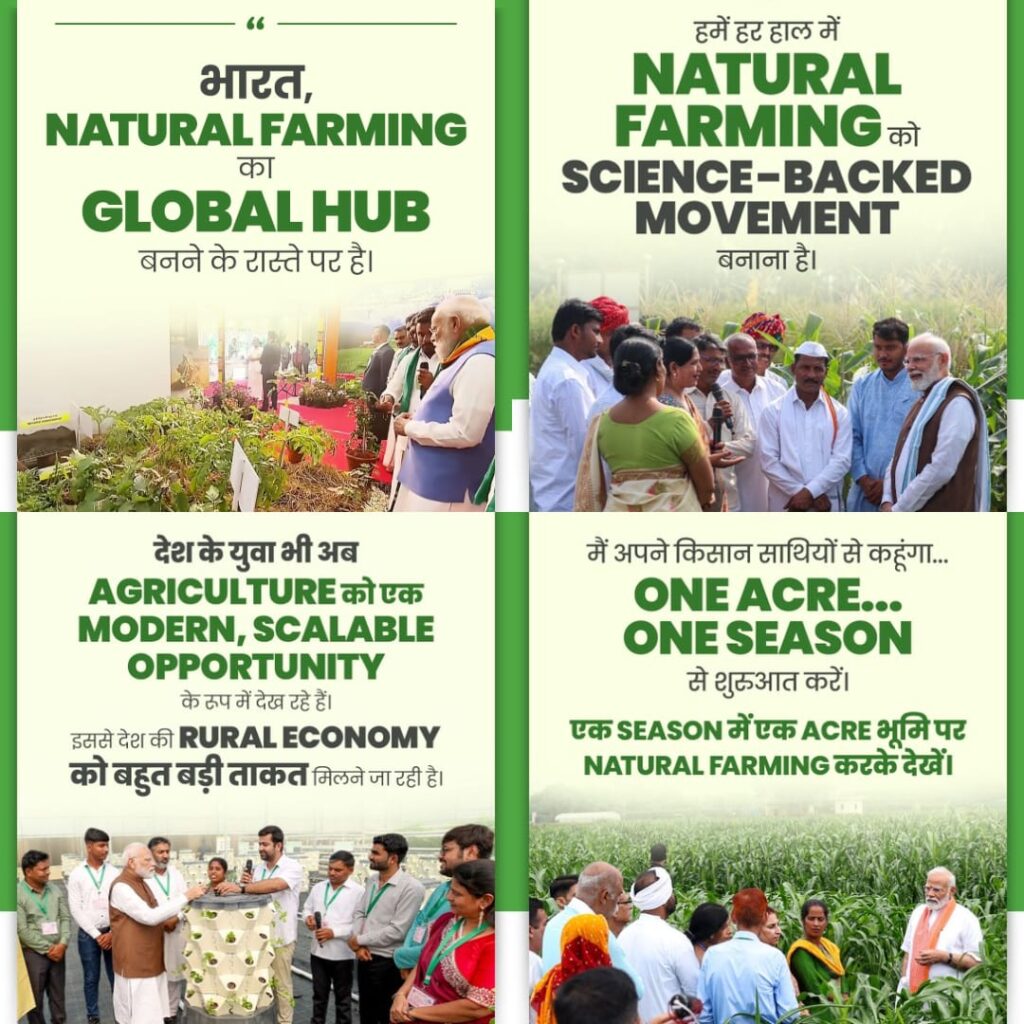 “भारत प्राकृतिक खेती का ग्लोबल हब बनने की तेज़ राह पर है। आने वाले वर्षों में खेती के हर क्षेत्र में ऐतिहासिक बदलाव देखने को मिलेंगे।”