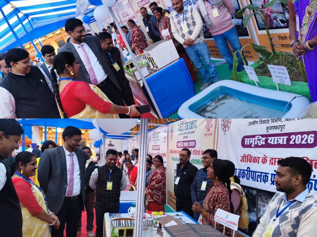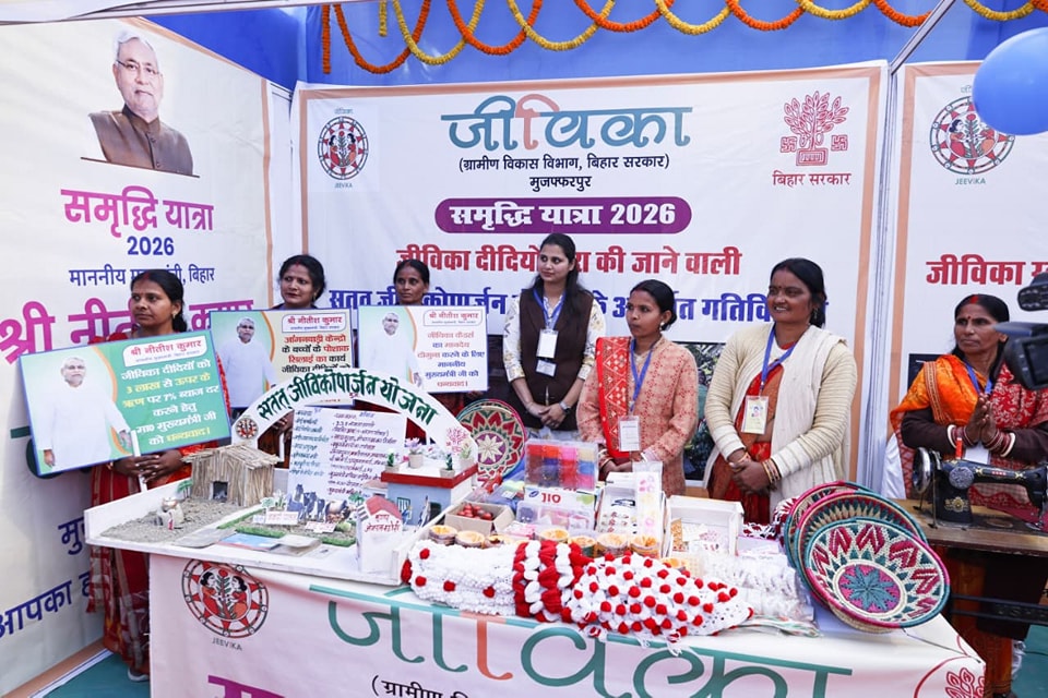 मुजफ्फरपुर। –राज्य सरकार की महत्वाकांक्षी समृद्धि यात्रा के क्रम में 23 जनवरी 2026 को मुख्यमंत्री नीतीश कुमार ने मुजफ्फरपुर जिले का व्यापक भ्रमण किया। इस दौरान उन्होंने जिले में आयोजित विभिन्न कार्यक्रमों में भाग लिया और जीविका द्वारा लगाए गए स्टॉलों का गहन अवलोकन किया। मुख्यमंत्री ने जीविका दीदियों द्वारा संचालित स्वरोजगार गतिविधियों की खुलकर सराहना करते हुए उनके प्रयासों को अन्य महिलाओं के लिए प्रेरणास्रोत बताया।
