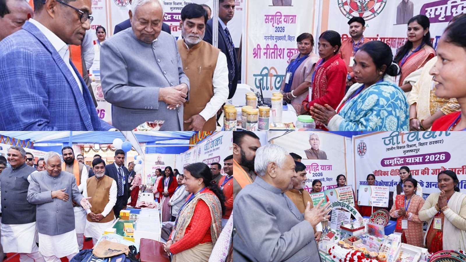 समृद्धि यात्रा 2026: मुजफ्फरपुर में मुख्यमंत्री नीतीश कुमार ने जीविका दीदियों के स्टॉलों का किया निरीक्षण