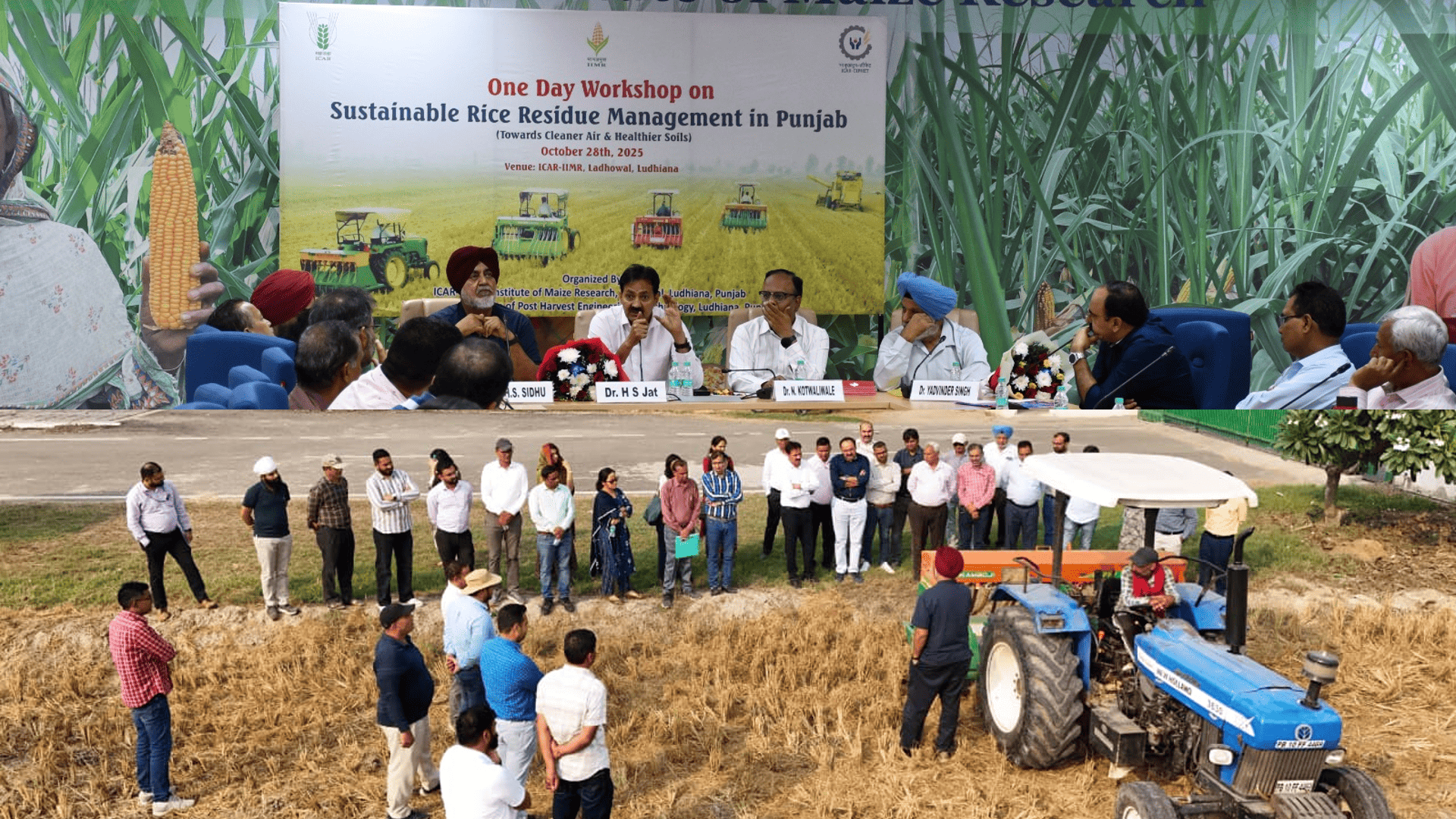 लुधियाना – पंजाब में पराली जलाने की समस्या और मिट्टी के स्वास्थ्य पर उसके दुष्प्रभाव को ध्यान में रखते हुए आईसीएआर–भारतीय मक्का अनुसंधान संस्थान (आईआईएमआर), लुधियाना; आईसीएआर–केंद्रीय पश्च–फसल अभियांत्रिकी एवं प्रौद्योगिकी संस्थान (सीआईपीएचईटी), लुधियाना; तथा इंटरनेशनल मक्का एंड व्हीट इम्प्रूवमेंट सेंटर (सीआईएमएमवाईटी) के संयुक्त तत्वावधान में “सस्टेनेबल राइस रेजिड्यू मैनेजमेंट इन पंजाब” विषय पर एक दिवसीय कार्यशाला का आयोजन आईसीएआर–आईआईएमआर, लुधियाना में किया गया। इस कार्यशाला में लगभग 100 प्रतिभागियों ने भाग लिया।